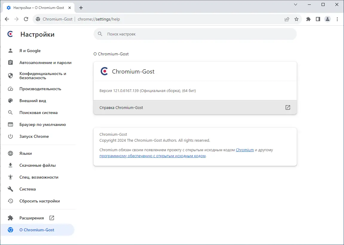 - Запустить браузер. Теперь он готов к работе с сайтами, использующими ГОСТ-алгоритмы, без дополнительных настроек и ошибок.