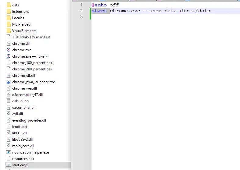 - Создать ярлык для файла start.cmd или start.txt и при необходимости указать параметр —user-data-dir=./data для сохранения настроек внутри папки.