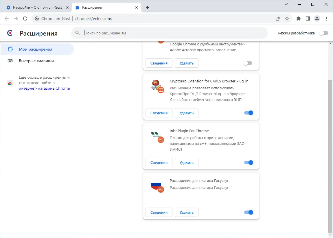 Chromium-Gost — это модифицированная версия стандартного браузера Chromium с открытым исходным кодом, специально адаптированная для работы с криптографическими алгоритмами ГОСТ. В отличие от оригинального Chromium, использующего библиотеку BoringSSL, которая не поддерживает ГОСТ, эта версия использует интерфейс msspi, что позволяет устанавливать защищённые соединения с сайтами, поддерживающими российскую криптографию. Такое решение обеспечивает прозрачность для пользователя и автоматический режим переключения при необходимости, что делает работу с сайтами, требующими ГОСТ, простой и удобной.