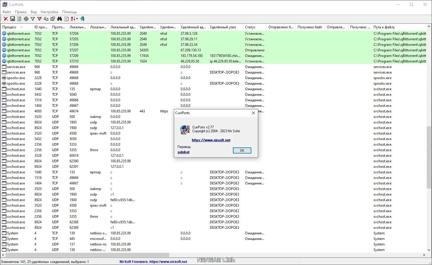Программа CurrPorts разработана компанией Nirsoft и предназначена для отображения всех активных сетевых соединений в реальном времени. Она позволяет не только просматривать список текущих портов и связанных с ними процессов, но и управлять ими: закрывать нежелательные соединения, останавливать процессы, открытые порты сохранять в отчетах различных форматов. Поддержка портативной версии обеспечивает возможность использования без установки, что особенно удобно для специалистов, работающих на нескольких системах или в условиях ограниченных прав доступа.