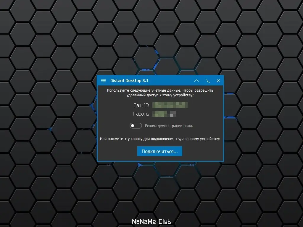 - Настройте соединение, введя идентификатор и пароль или предоставьте их своему клиенту или помощнику.