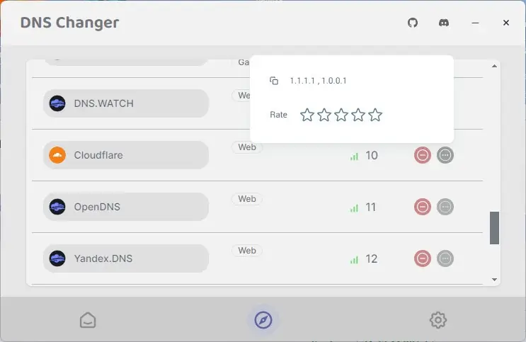 Данная программа предназначена для удобной смены DNS-серверов без сложных настроек и длительных процедур. В её арсенале широкий выбор решений от популярных провайдеров, таких как Cloudflare, Asiatech, Electro Team, а также возможность добавлять собственные серверы. Для каждого сервера отображается его адрес, ping и статус соединения, что позволяет осуществлять быстрый контроль и изменение настроек сети.