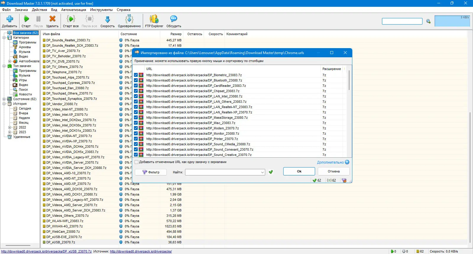 - Поиск зеркал, управление категориями, навигация по истории закачек;