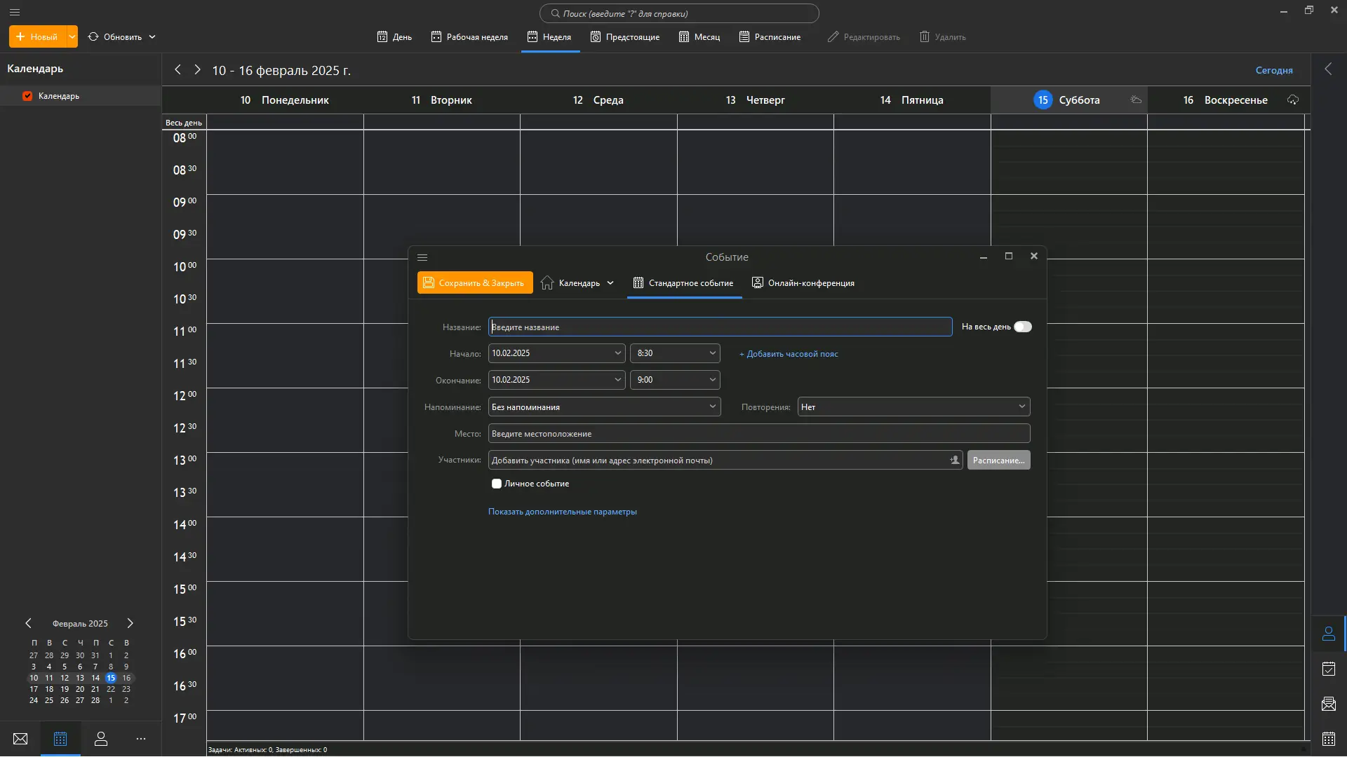 - Календарь с интерфейсами для дня, недели, месяца и списка задач