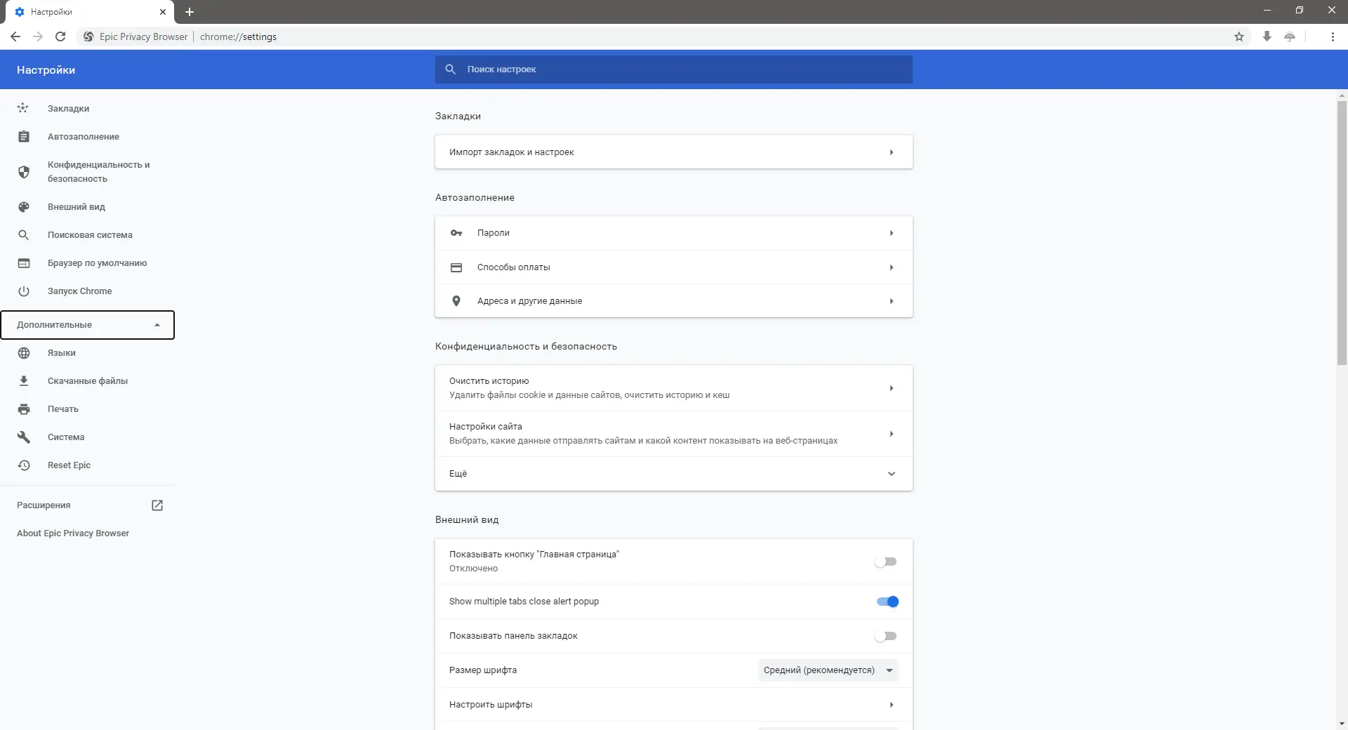 Epic Privacy Browser — современный веб-браузер, ориентированный на максимальную защиту личных данных пользователя. Он обеспечивает высокий уровень приватности за счет блокировки сторонних куки, трекеров и рекламы, а также использования встроенного прокси-сервера для скрытия IP. Этот браузер построен на платформе Chromium, что гарантирует стабильность и скорость работы, при этом исключая поддержку плагинов и сохраняя анонимность на каждом этапе серфинга.