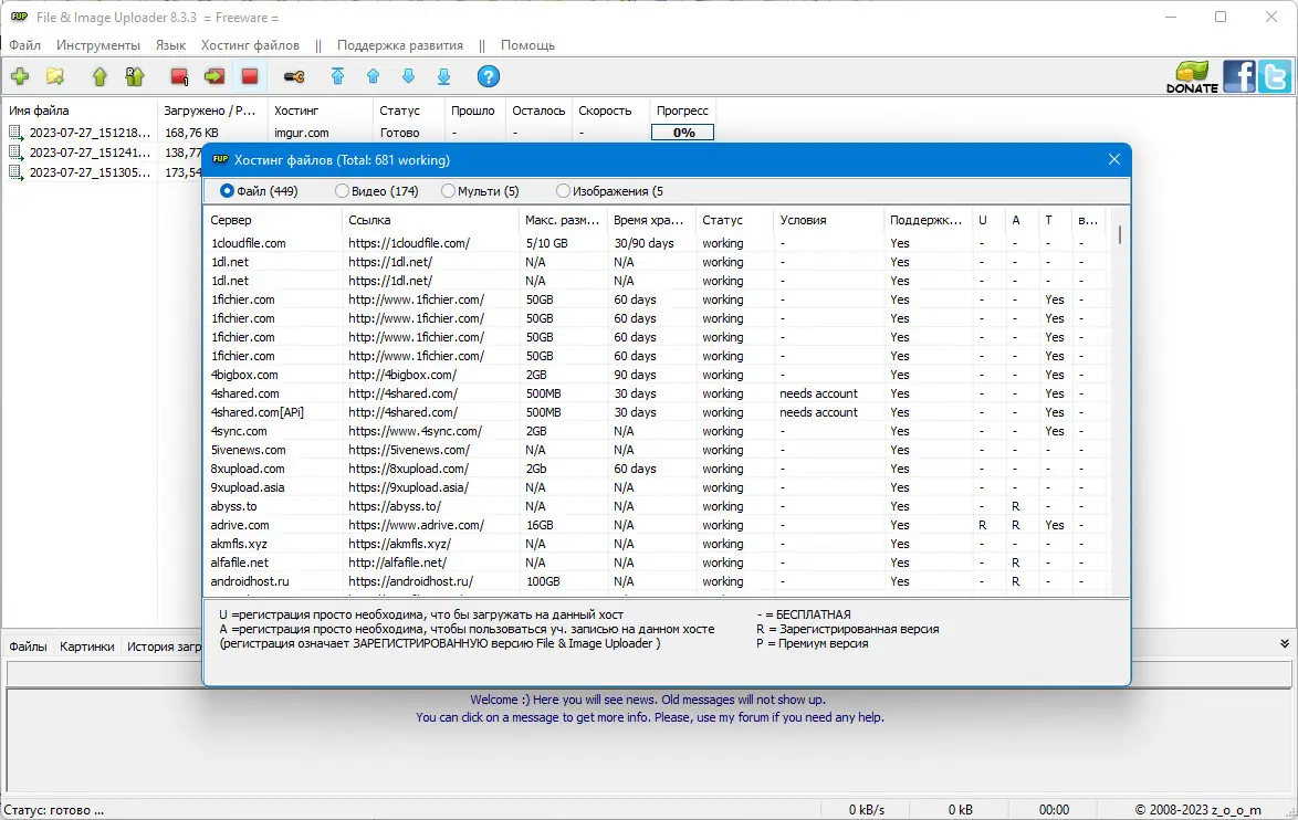 Программа File & Image Uploader предназначена для облегчения процесса загрузки файлов на разнообразные файлообменники. В базе данных программы содержится более 250 популярных ресурсов, среди которых как международные, так и чешские серверы. Весь интерфейс разработан так, чтобы обеспечить максимальное удобство — простая навигация, многоязычная поддержка и отсутствие рекламы делают работу максимально комфортной. Благодаря работе с прокси, премиум аккаунтами, возможностью параллельных загрузок и ограничением скорости, пользователи получают инструменты для оптимизации процесса загрузки, экономии времени и ресурсов.