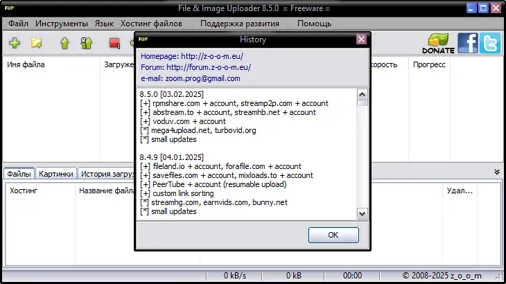 Программа File & Image Uploader представляет собой легкий, многоязычный инструмент, который позволяет легко загружать файлы на различные серверы, поддерживая работу с прокси, премиум-аккаунтами и обеспечивая возможность параллельных загрузок. Вся функциональность реализована без рекламы, а интерфейс — интуитивно понятен и удобен для использования. В базе данных программы содержится информация о более 250 популярных файлообменных ресурсах, что значительно расширяет возможности для качественной загрузки и распределения данных.