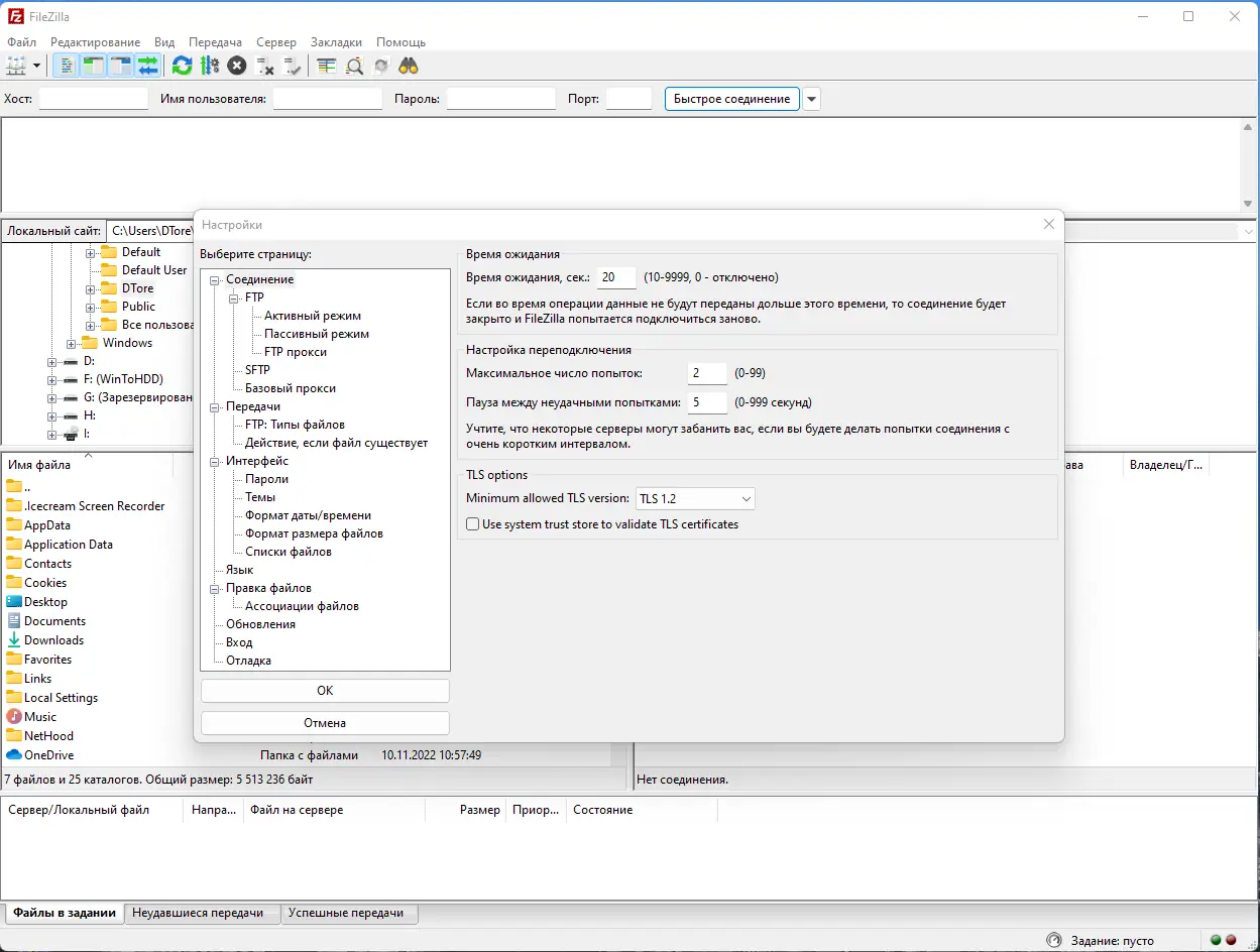 - Передача данных по протоколам FTP, FTPS и SFTP