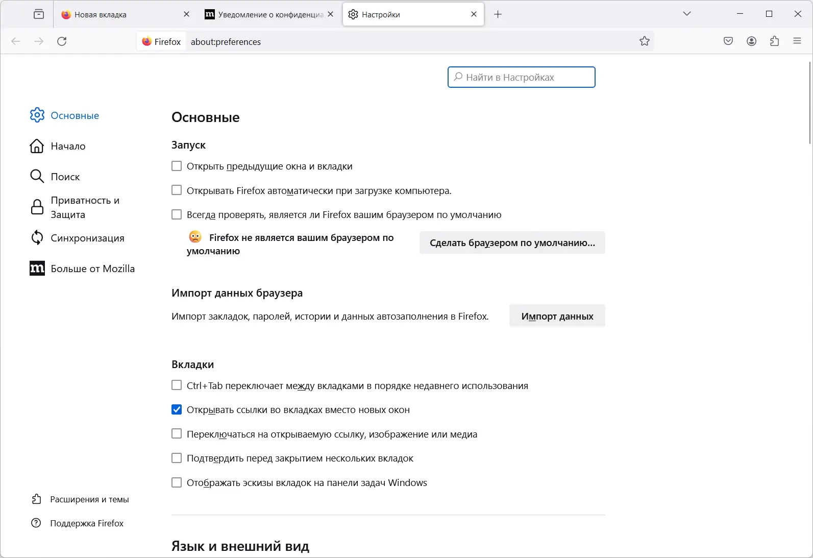 - При необходимости настройте параметры безопасности и расширений.