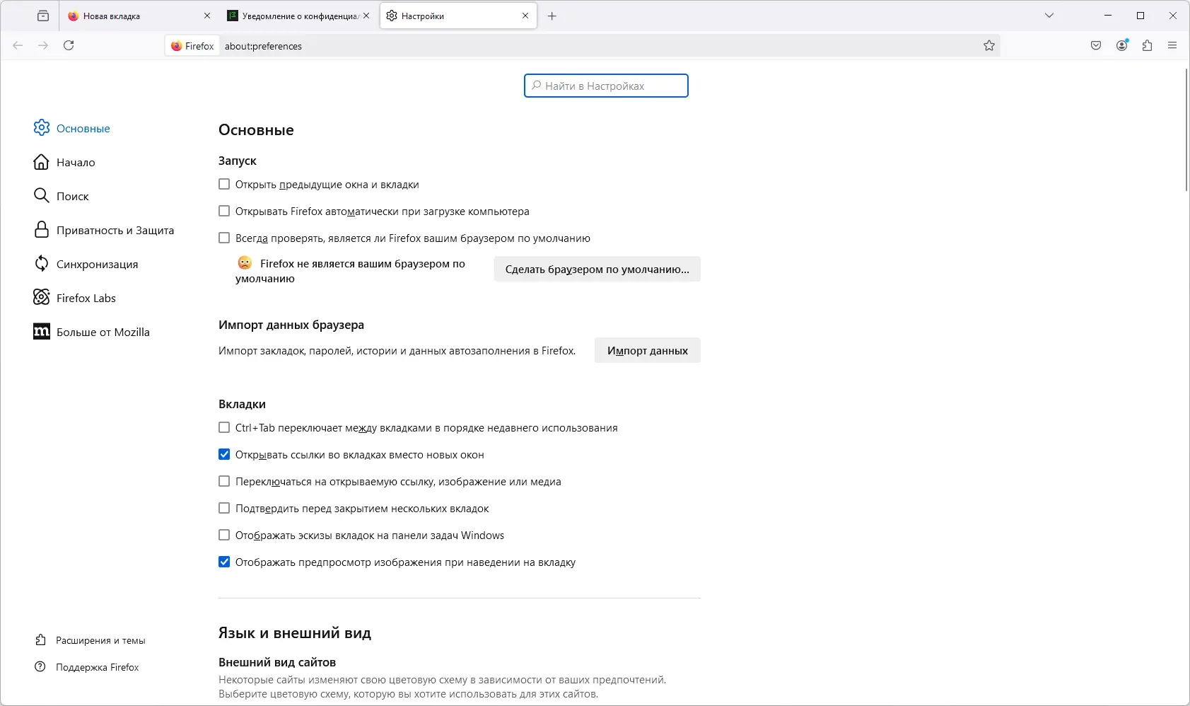 - Поддержка вкладок для одновременного просмотра нескольких страниц
