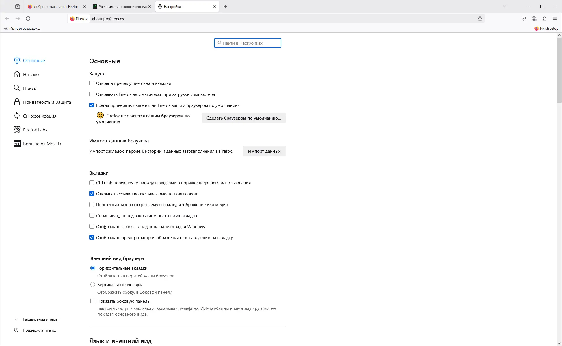 - Настроить параметры безопасности и внешнего вида при первом запуске.