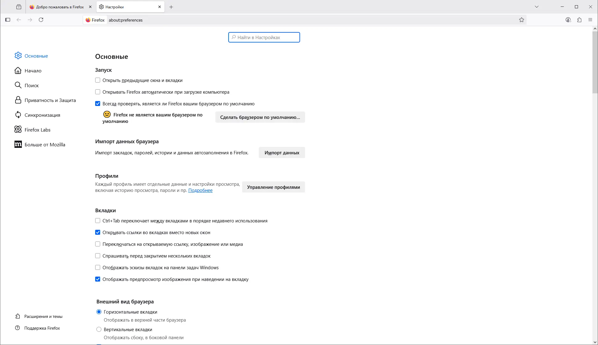 - Широкие возможности по настройке интерфейса и поведения браузера