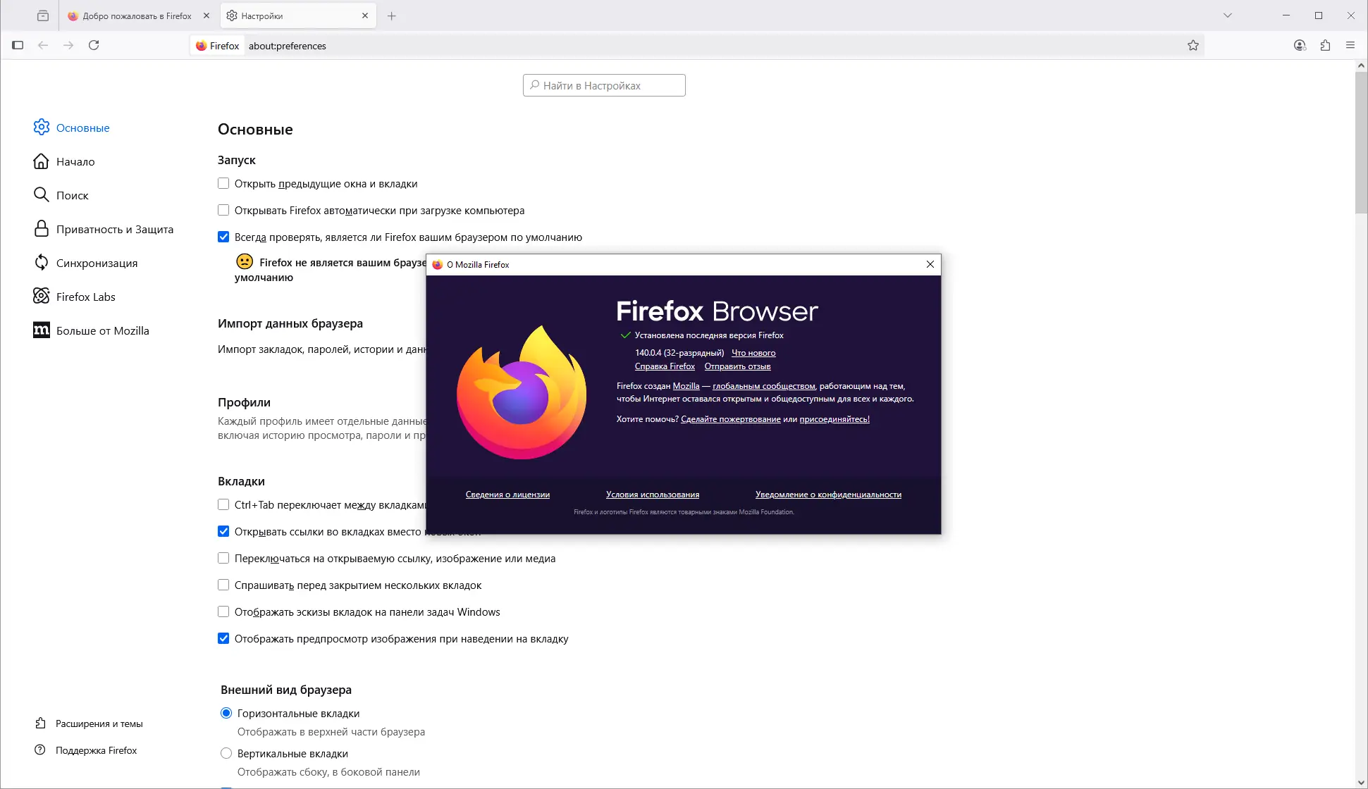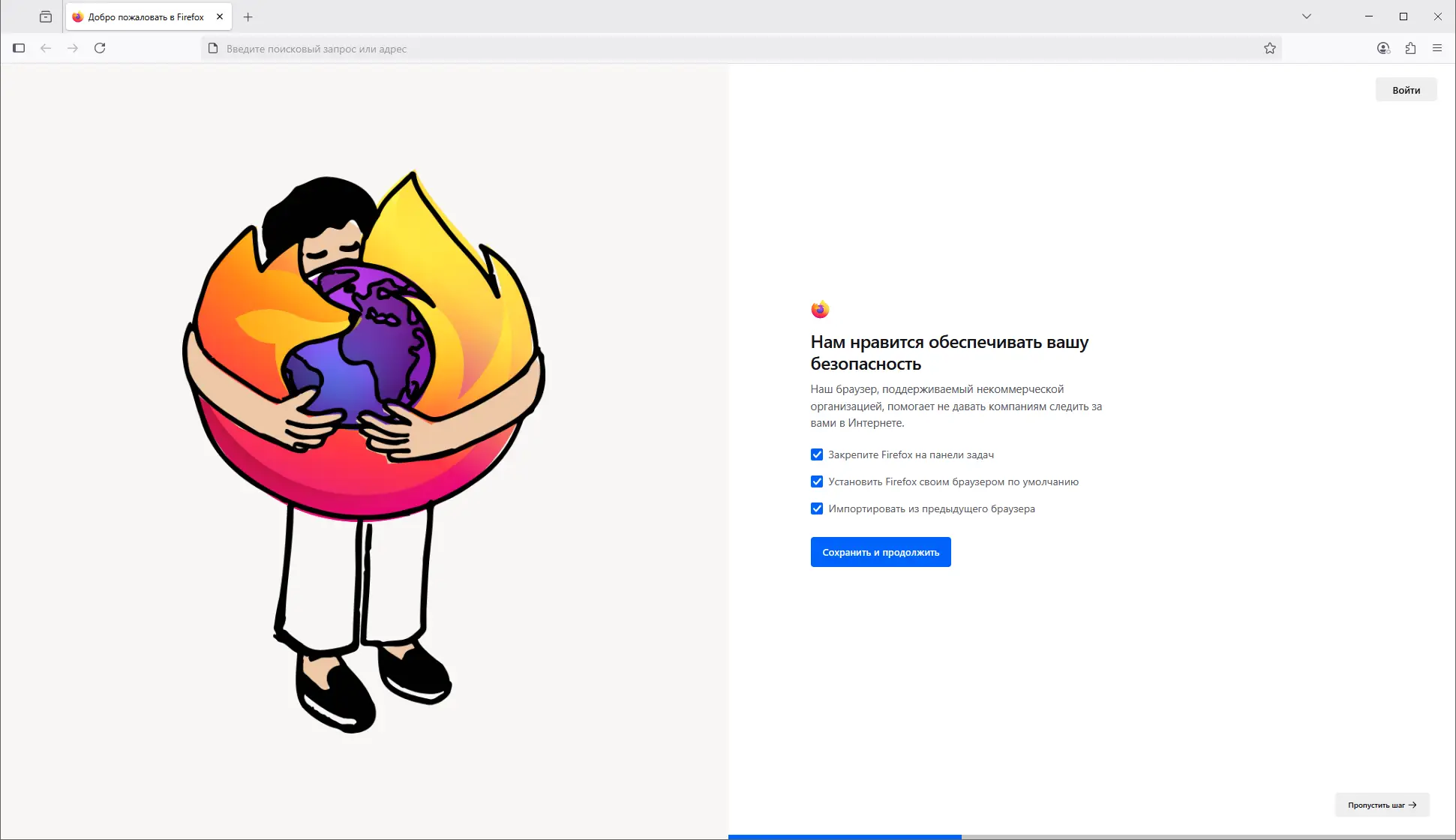 - Дождитесь завершения процесса и запустите браузер для первичной настройки.