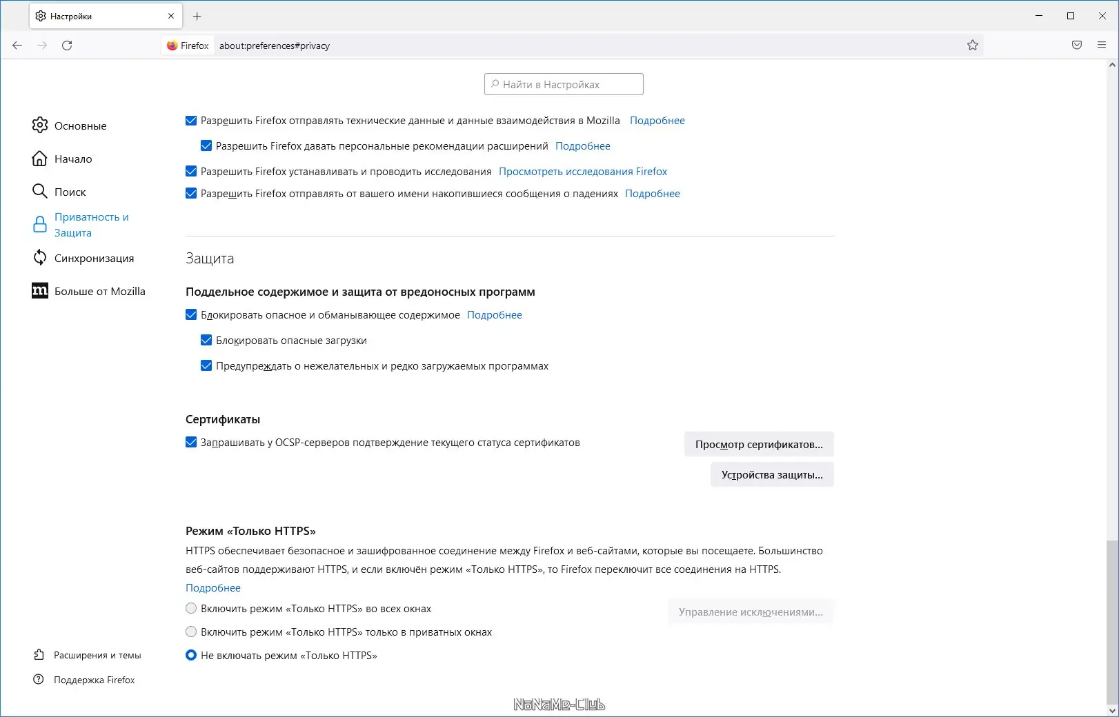 Дополнительно | Доступ к интернету для обновлений и загрузки расширений |