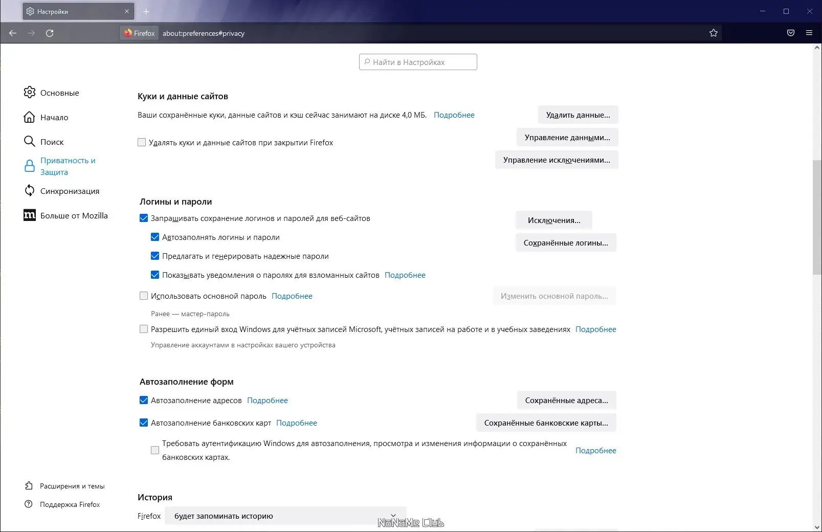 - При необходимости настроить параметры защиты, расширения и интерфейса.