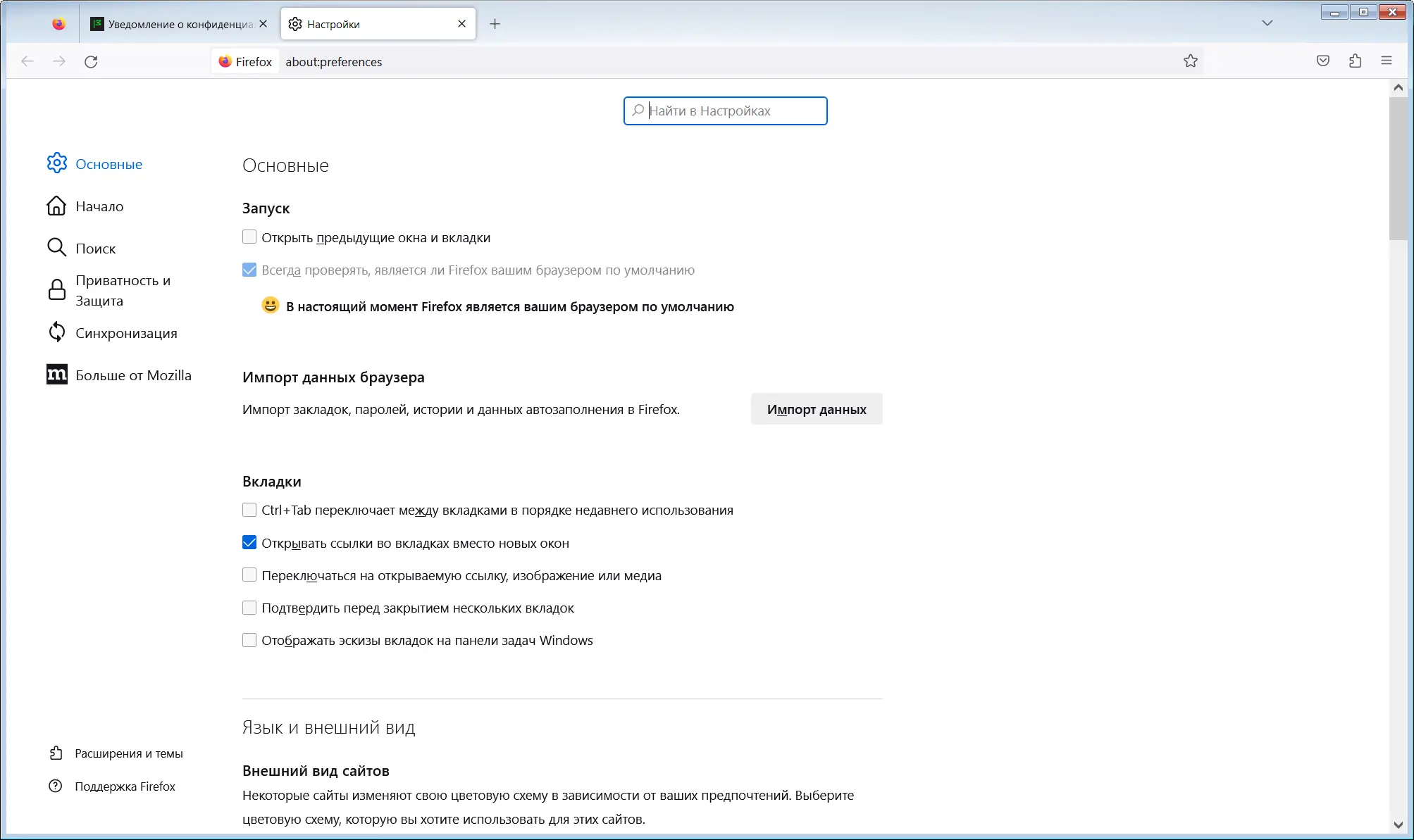 - Поддержка вкладок для одновременного просмотра нескольких страниц