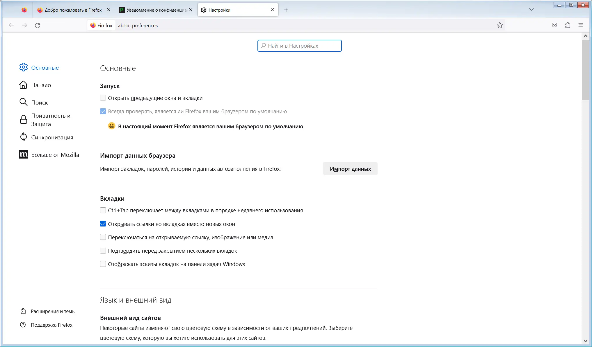 - Гибкие настройки внешнего вида и поведения браузера