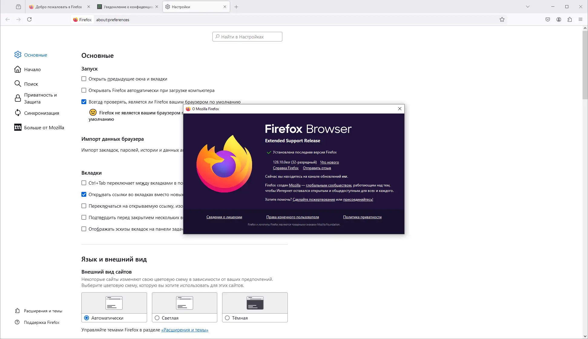 - Некоторые расширения могут требовать обновлений или не поддерживаться в ESR-версии