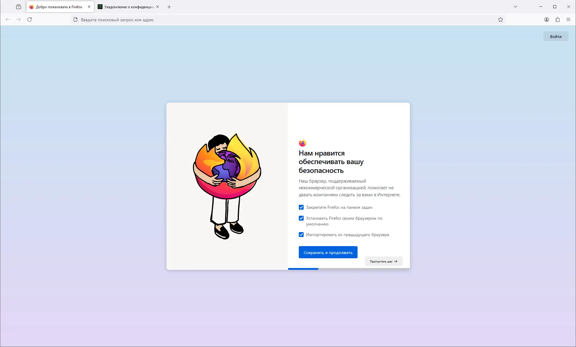 - Дождитесь завершения процесса установки и запустите браузер для первичной настройки.