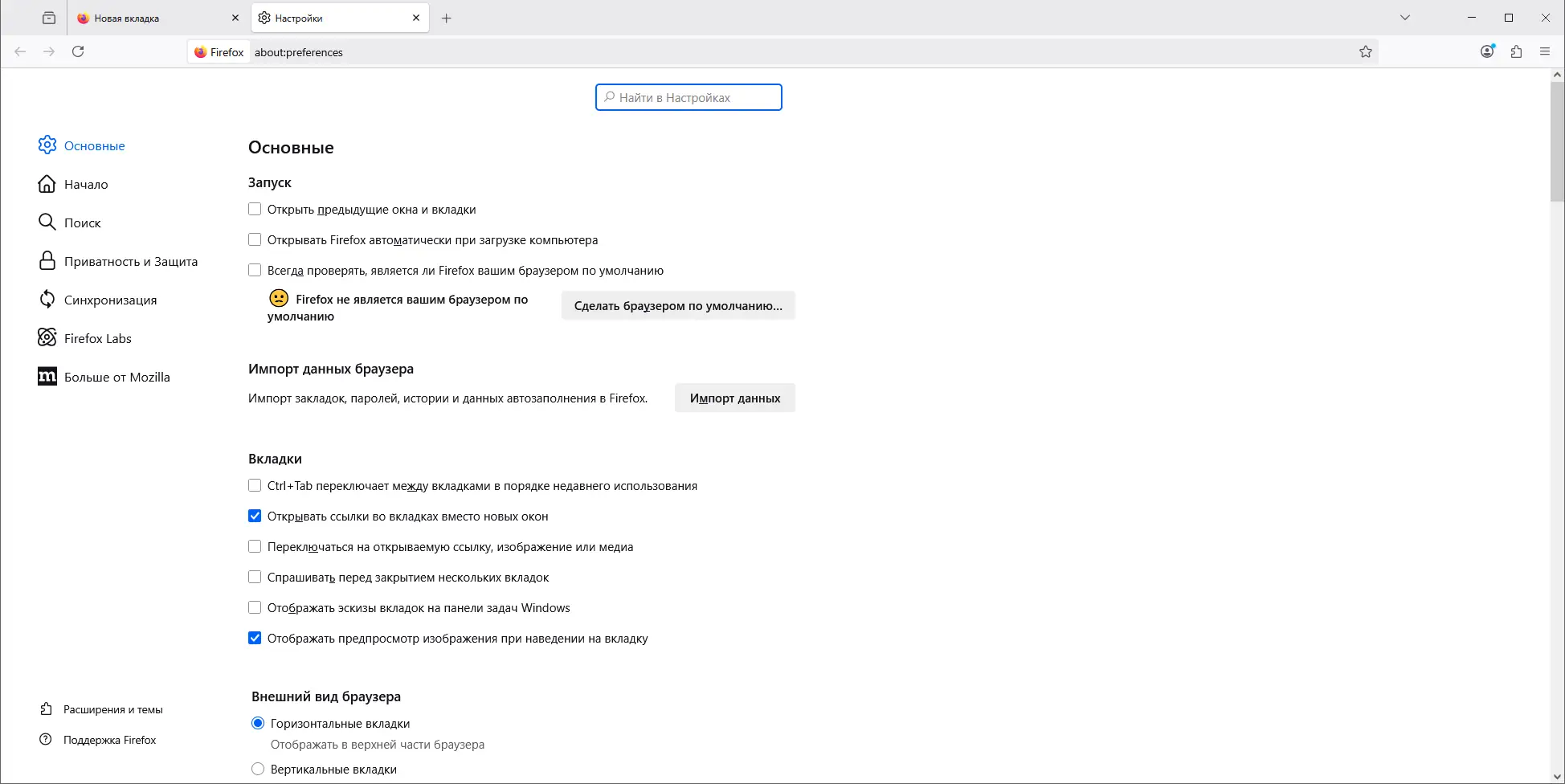- При необходимости выполнить первичную настройку браузера, включая добавление расширений и настройку внешнего вида