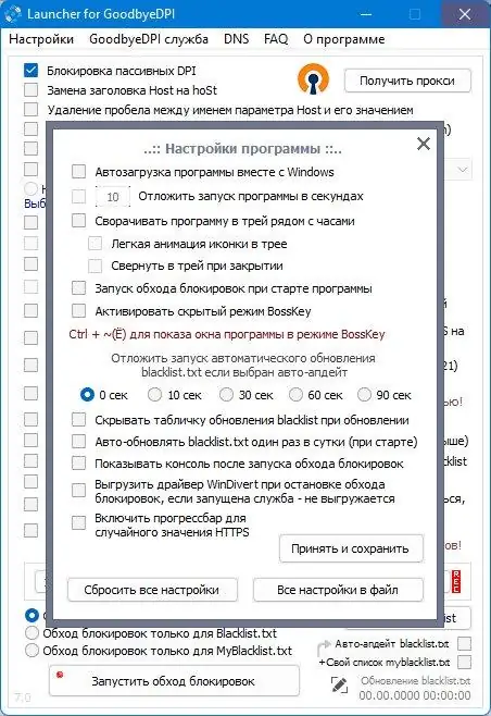 - Запустите GoodbyeDPILauncher и произведите первичную настройку для автоматического или ручного режима работы.