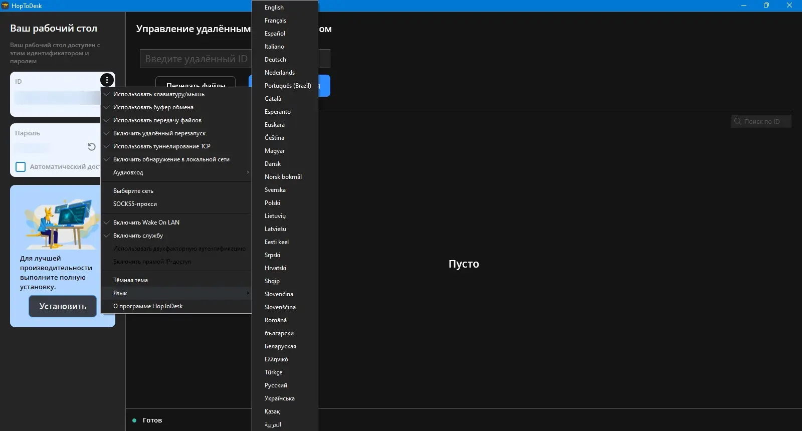 HopToDesk позволяет пользователям легко выполнять совместное использование экрана, организовывать удаленную помощь, передавать файлы и общаться с коллегами. Программа работает на Windows 7, 8/8.1, 10, 11 в 32- и 64-битных версиях и доступна для скачивания совершенно бесплатно.