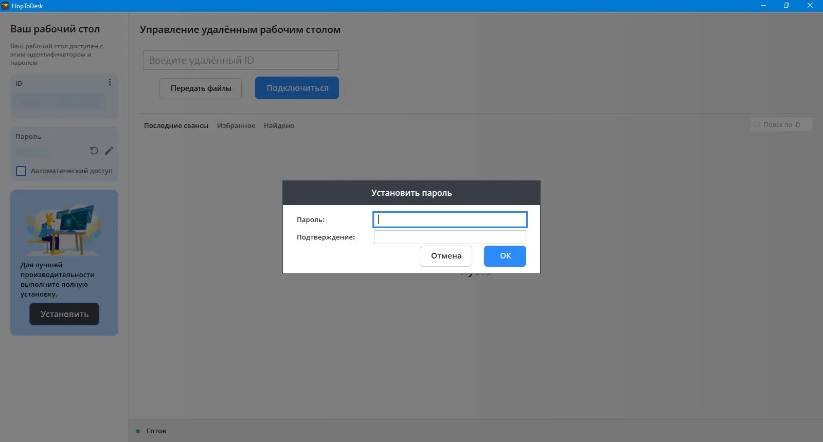 - При первом запуске программа автоматически настроит службу для постоянного прослушивания входящих подключений.