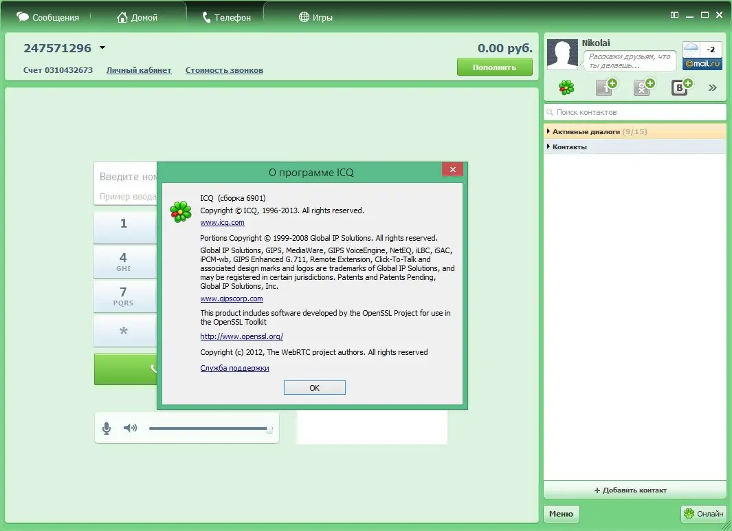 - Начать общение быстро и безопасно без регистрации UIN, используя номер мобильного телефона или учетные записи соцсетей;