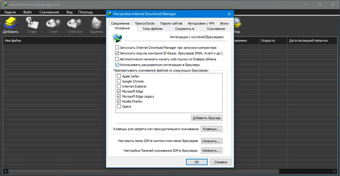 Особое внимание уделяется возможности интеграции с браузерами, что делает процесс скачивания еще более комфортным. Программа также включает опции для настройки таймаутов, количества подключений и других параметров в соответствии с типом вашего интернет-соединения, что повышает эффективность загрузки.