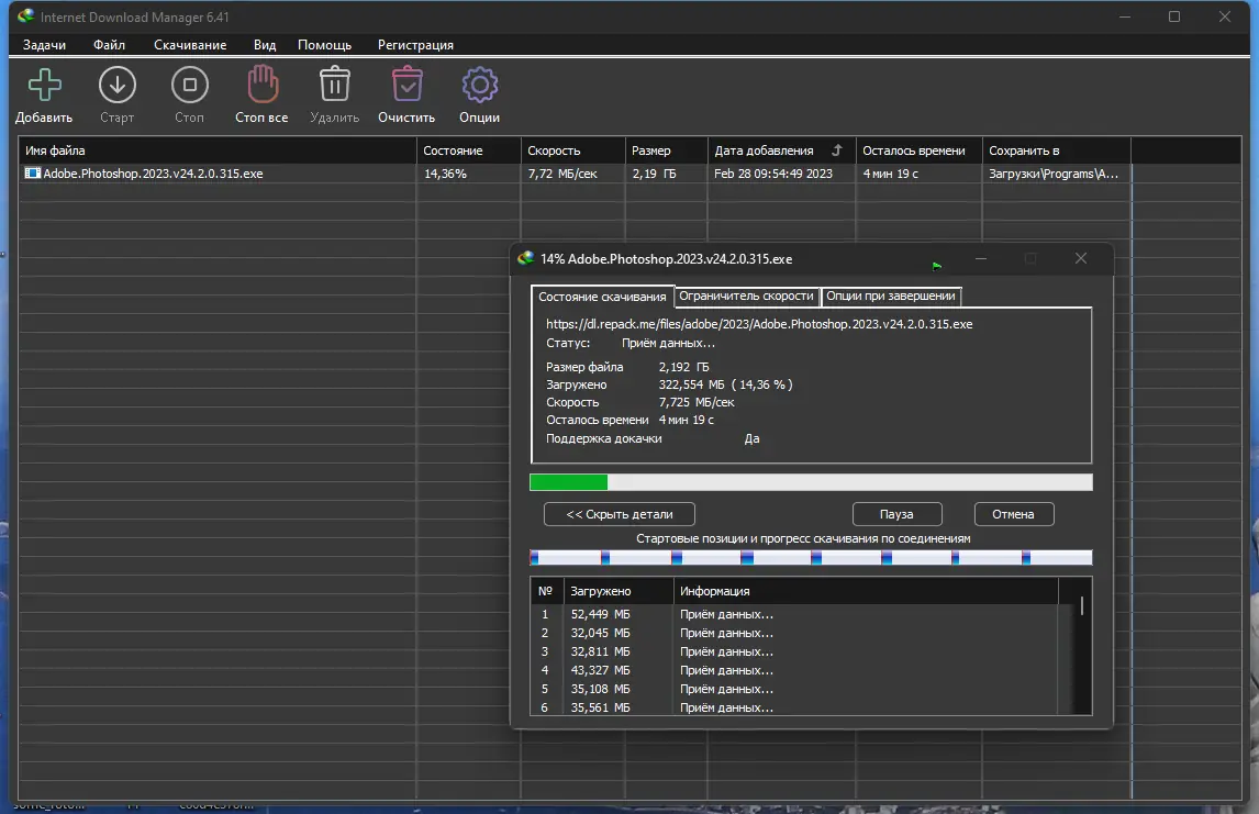 - Высокая скорость загрузки за счет интеллектуальной сегментации и многократных соединений.
