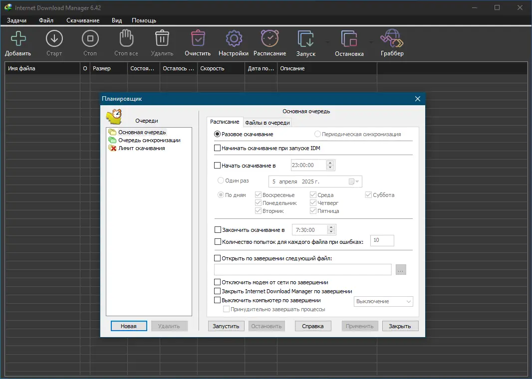 - Загрузка файлов по расписанию и автоматический запуск скачиваний.