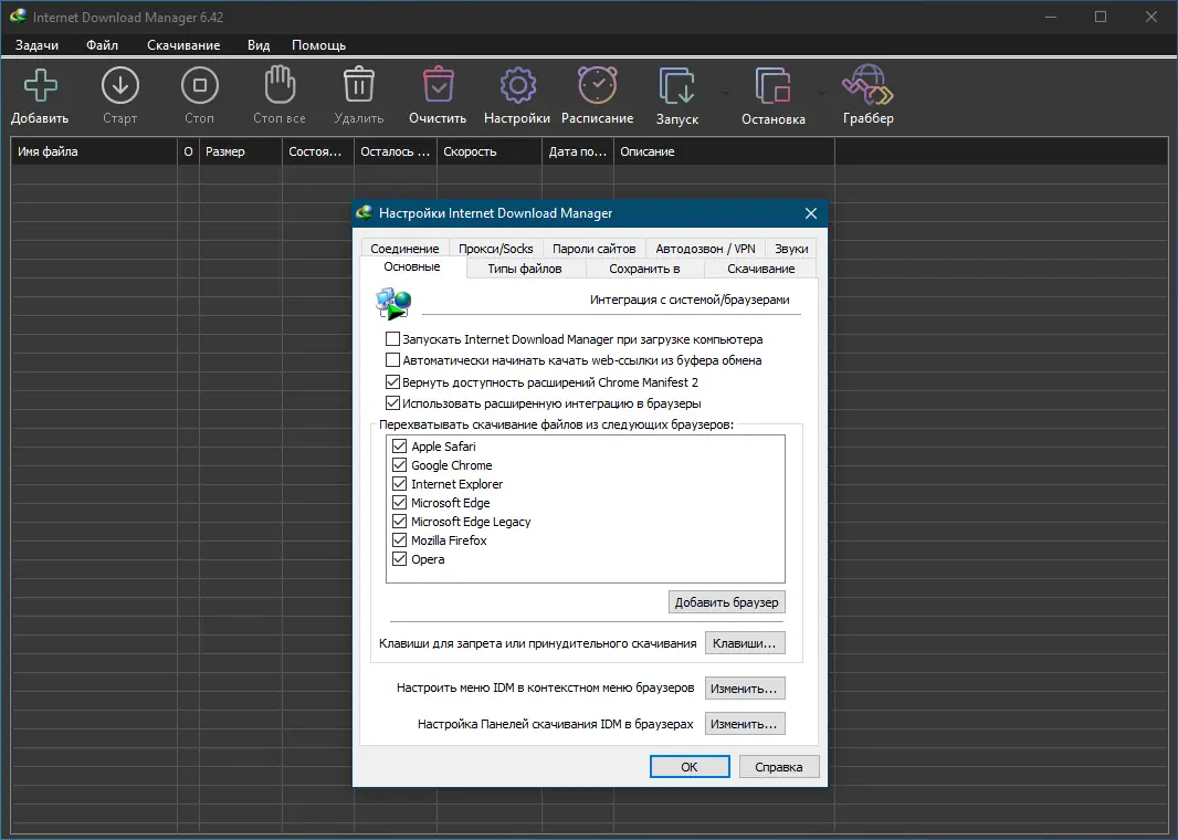 - Настройте параметры автоматического запуска IDM и управления браузерами.