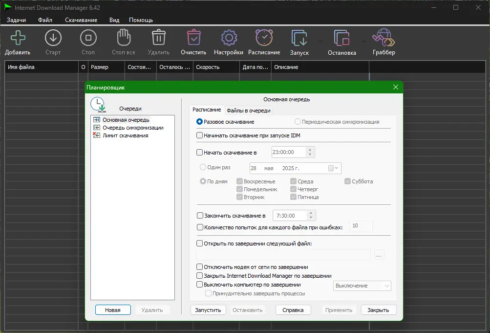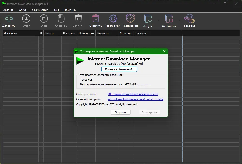 Internet Download Manager — это мощный инструмент для ускорения загрузки файлов из Интернета, который поддерживает докачку и загрузку по расписанию. Благодаря встроенному интеллектуальному ускорителю, использующему динамическую сегментацию файла и многослойную технологию загрузки, программа позволяет значительно увеличить скорость скачивания. Она подойдет для скачивания игр, фильмов, музыки, программ и других файлов, облегчая процесс и делая его более удобным. IDM также обеспечивает восстановление прерванных загрузок из-за проблем сети или отключения питания, что очень важно для долгих и тяжелых скачиваний.