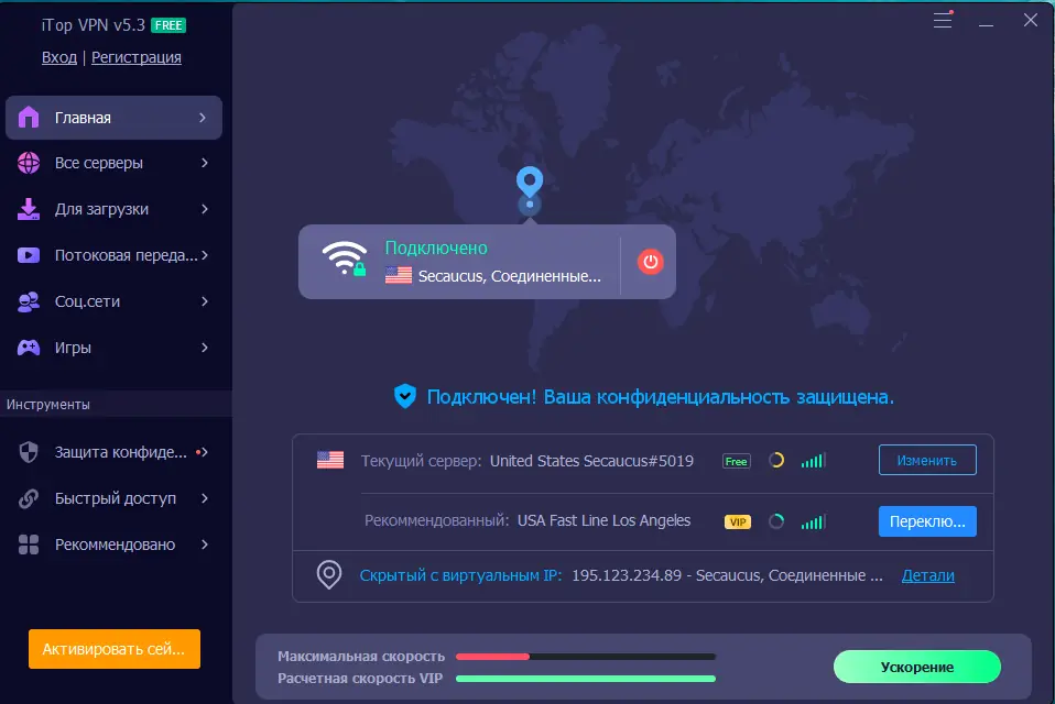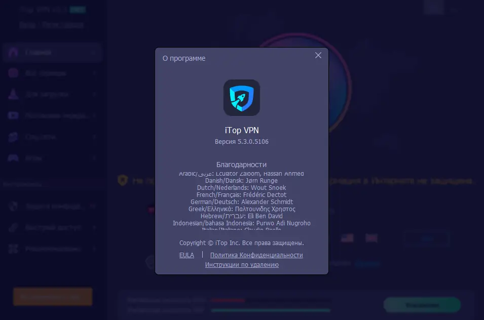 iTop VPN — это мощное решение для защиты ваших данных и обхода геоограничений на платформе Windows. программа поддерживает все современные протоколы шифрования, обеспечивая молниеносную скорость передачи данных и стабильное соединение. Благодаря широкому выбору серверов по всему миру, вы можете легко получить доступ к любимым сайтам и приложениям, независимо от вашего местоположения. Надёжность и лёгкость в использовании делают его отличным выбором для пользователей, ищущих качественный VPN для ПК.