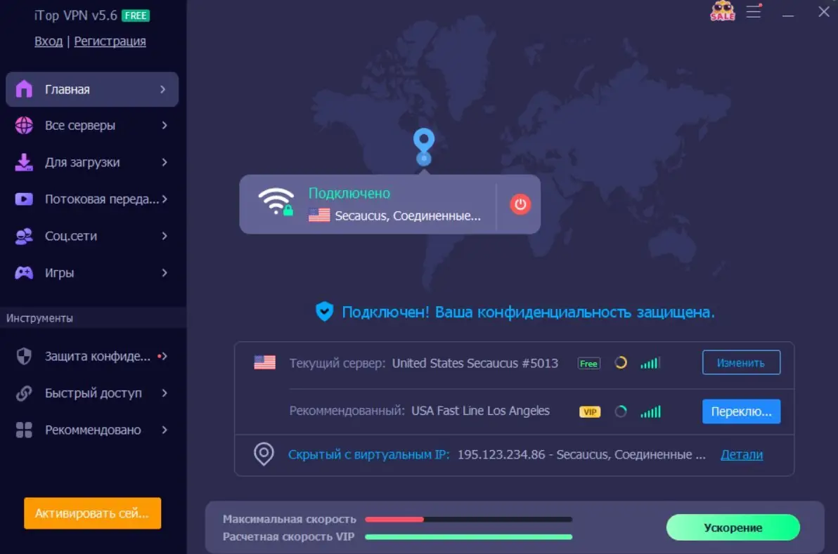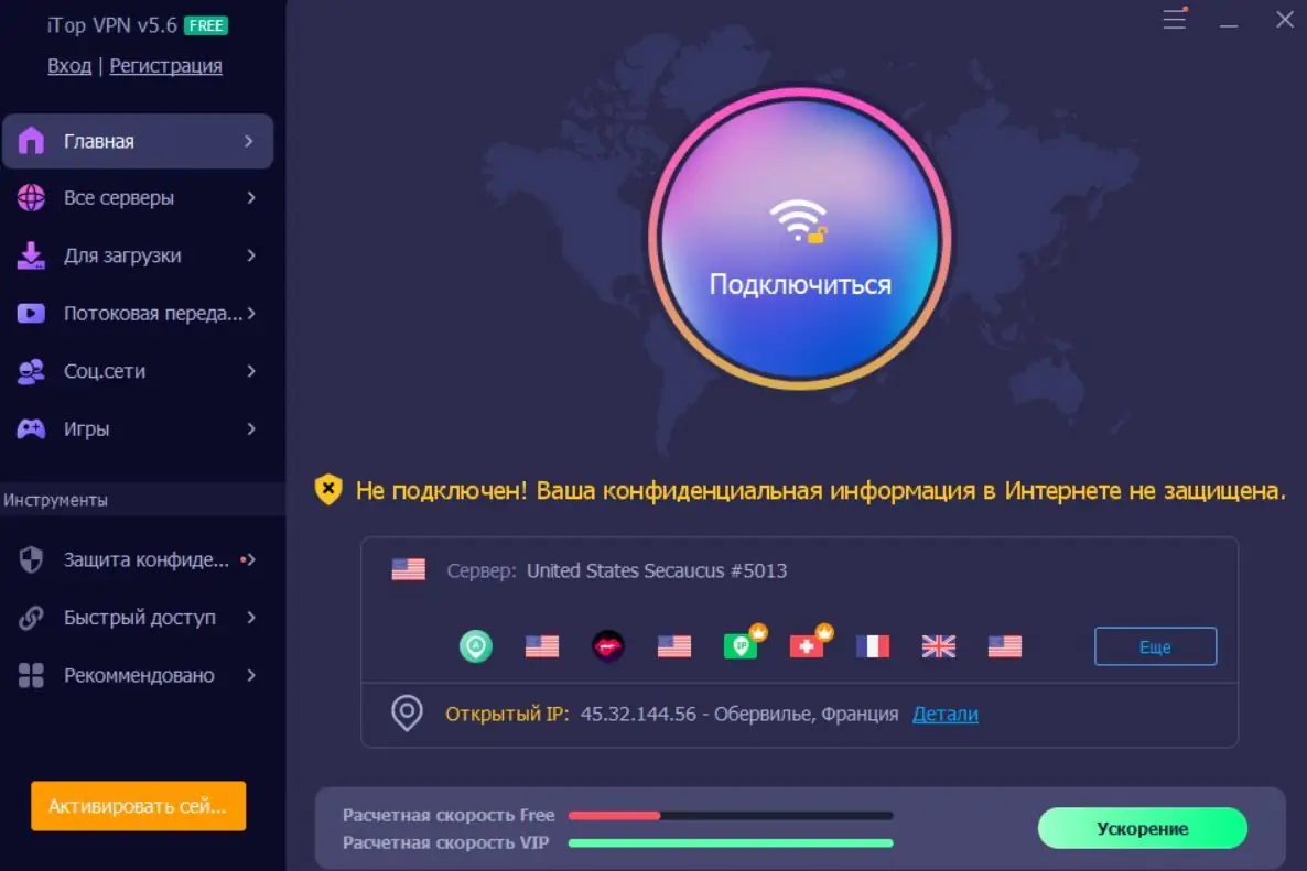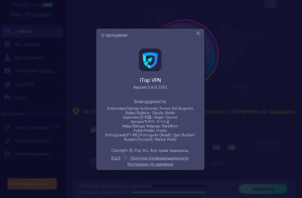 iTop VPN — это универсальное решение для безопасного и быстрого доступа к интернет-контенту с использованием современных протоколов шифрования. Поддерживая все популярные версии Windows — от 7 до 11, а также архитектуры x32 и x64 Bit, программа обеспечивает надежную защиту данных и высокоскоростное соединение.