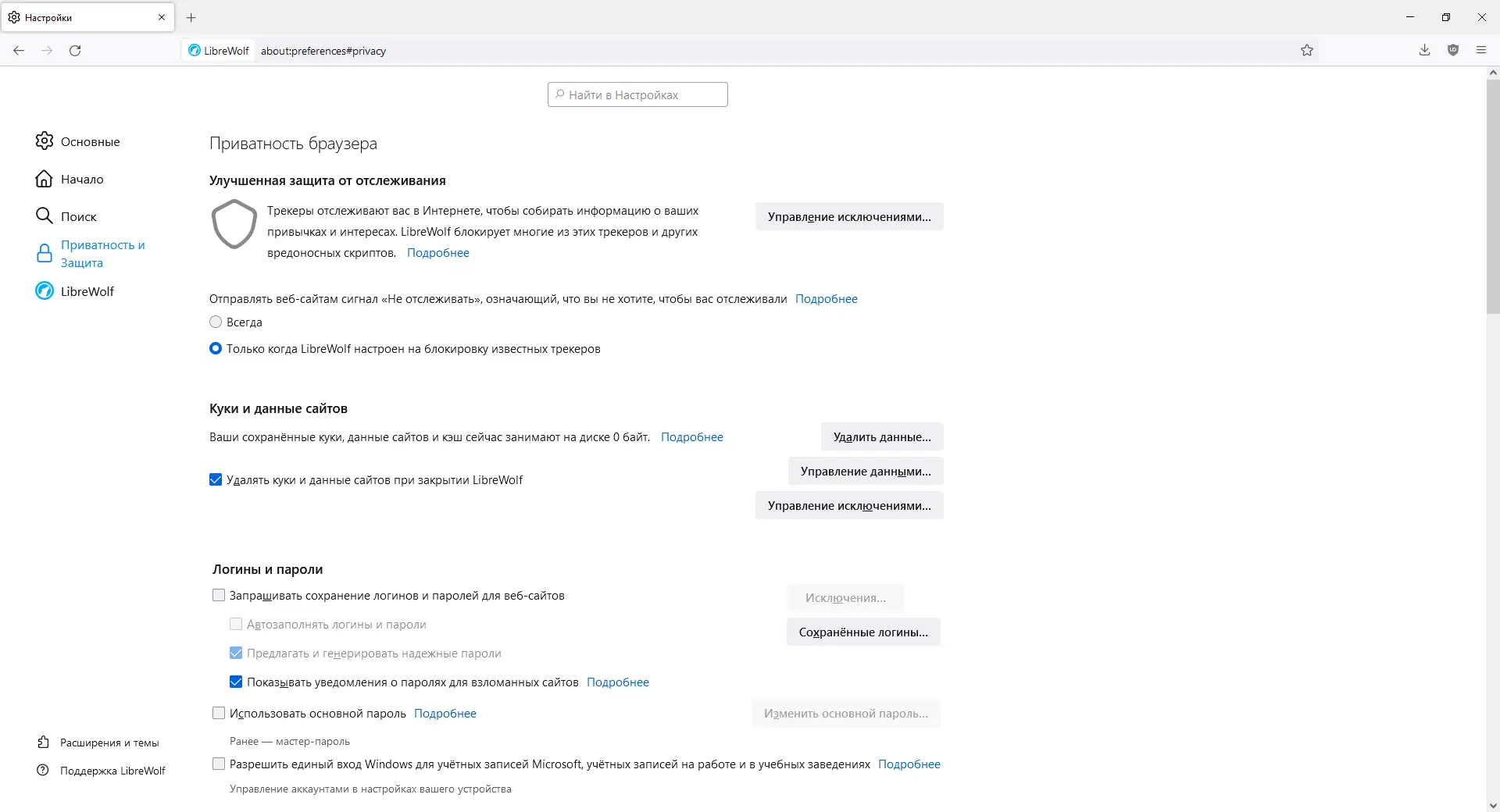LibreWolf — это свободный и ориентированный на максимальную приватность браузер, основанный на открытом исходном коде. Он создан для пользователей, которым важна безопасность и конфиденциальность при работе в интернете и которые хотят избегать встроенных служб телеметрии, характерных для стандартных браузеров.