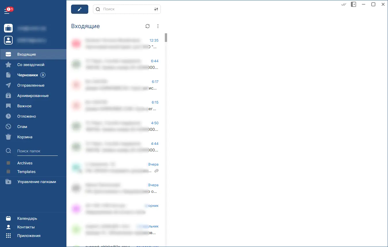 - Поддержка нескольких учетных записей с протоколами IMAP и POP3