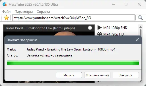 MassTube — это простая и удобная программа для скачивания видео с YouTube и других видеосервисов. Она позволяет быстро получать видеоролики в различных форматах и разрешениях всего в один клик, без необходимости входа или регистрации. Благодаря легкому интерфейсу и минимальному использованию системных ресурсов, программа идеально подходит как новичкам, так и опытным пользователям, желающим быстро загрузить любимое видео.