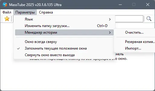 - Автоматическое сохранение истории загрузок и поиска.
