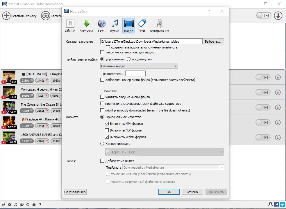 Программа поддерживает загрузку в сверхвысоких разрешениях, таких как 4K и 8K, а также работу с плейлистами и каналами, что значительно расширяет возможности коллекционирования видео. Можно сохранять видео целиком или извлекать только аудио-дорожки в формате MP3. Поддержка различных сервисов – от YouTube и Vimeo до Dailymotion, Facebook и SoundCloud – обеспечивает универсальность использования. Кроме того, предусмотрена интеграция с iTunes, автоматическое добавление скачанных файлов и возможность их редактирования.