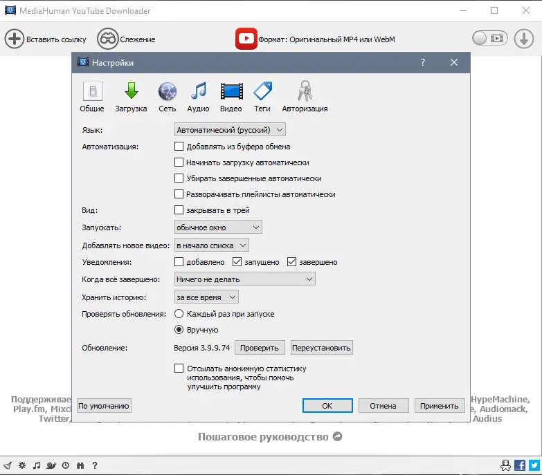 - Произведите запуск программы и настройте параметры скачивания согласно собственным предпочтениям.