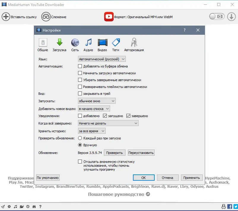 Для корректной работы MediaHuman YouTube Downloader рекомендуется использовать следующую конфигурацию системы: