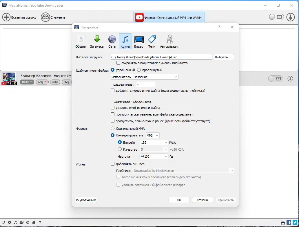 - Интеграция с iTunes и Music.app для автоматического добавления скачанных треков