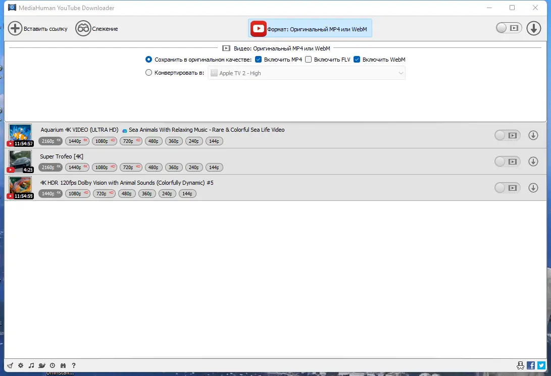MediaHuman YouTube Downloader — это мощное приложение, созданное для скачивания видео и аудиодорожек с различных популярных платформ. Удобный интерфейс и расширенные функции позволяют быстро сохранять нужный контент в оригинальном качестве и в различных разрешениях, что делает просмотр доступным в любое время и на любом устройстве.