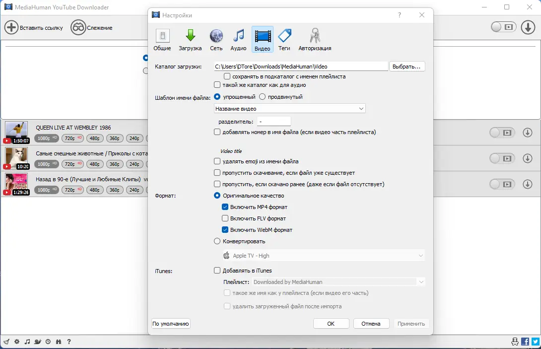 - Поддержка плейлистов и каналов, а также автоматическая загрузка новых видео