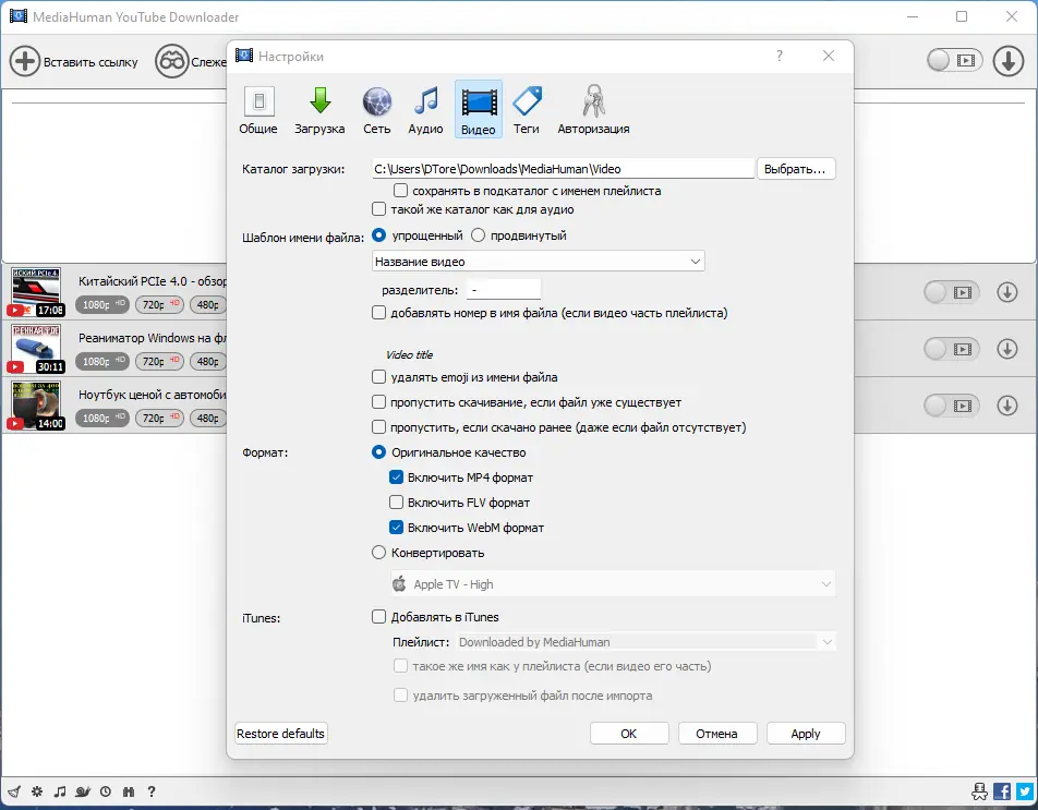 - После завершения установки запустите программу и настройте основные параметры: качество, папки загрузки, автоматическую интеграцию в iTunes или Music.app.