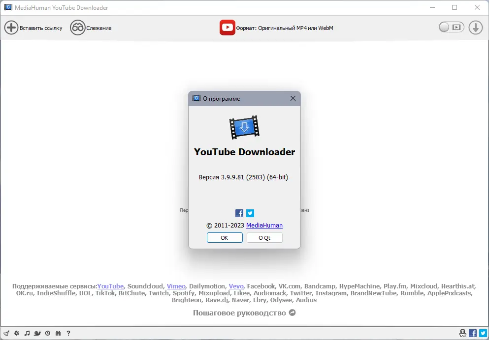 Помимо YouTube, программа поддерживает Rutube, Vevo, Vimeo, Dailymotion, а также социальные платформы, такие как Facebook, ВКонтакте, OK.ru и другие, что делает её универсальным инструментом для загрузки разнообразного видео-контента.