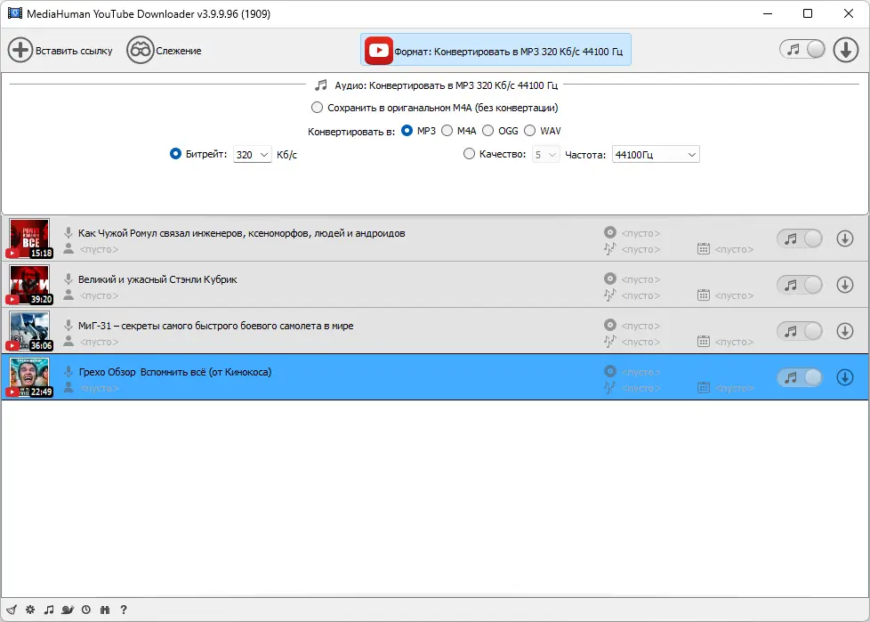 - Закачка нескольких файлов одновременно и автоматическая загрузка новых видео из каналов или плейлистов.