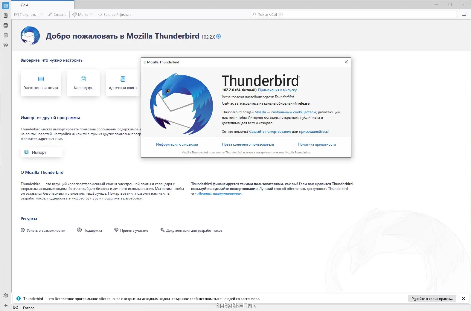 Mozilla Thunderbird — бесплатная программа для работы с электронной почтой, отличающаяся легкостью и безопасностью. Данная версия предоставляется полностью бесплатно и доступна для скачивания без затрат, включая варианты для Windows 7, 8/8.1, 10, 11 на 32 и 64 битах. Она помогает эффективно управлять большим количеством писем и контактами, а также включает мощные инструменты для борьбы со спамом и расширения возможностей за счет дополнений.