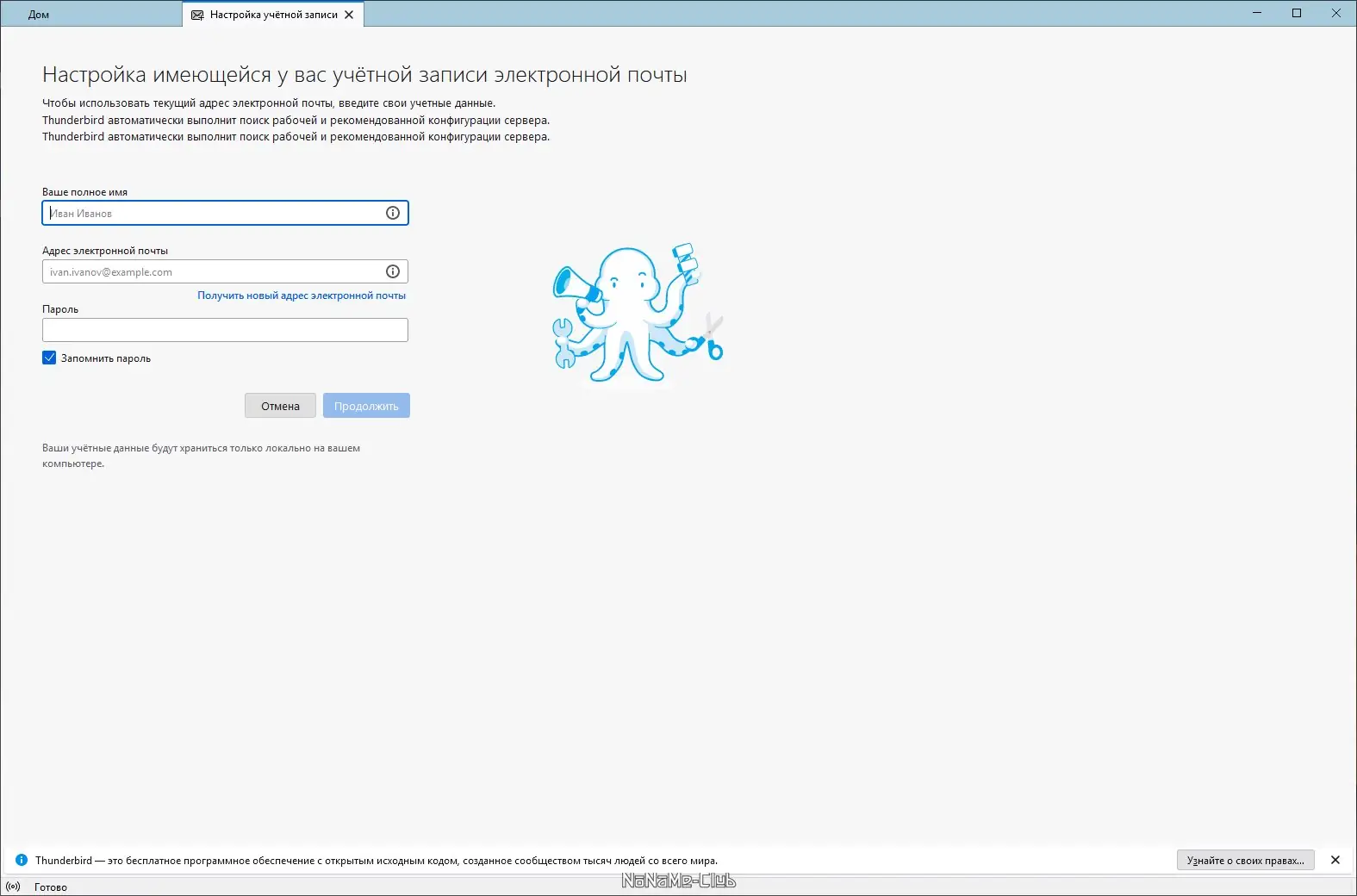 - Дождитесь завершения установки и запустите программу для первичной настройки учетных записей.